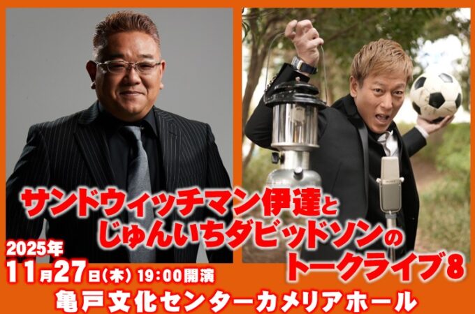 2025.10.27NEWSLIVE/EVENT11/27(木)「サンドウィッチマン伊達とじゅんいちダビッドソンのトークライブ8」開催決定!