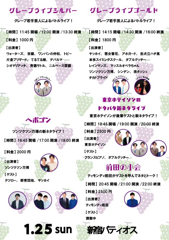 グレープカンパニー事務所ライブの公演情報をお知らせします!🍇