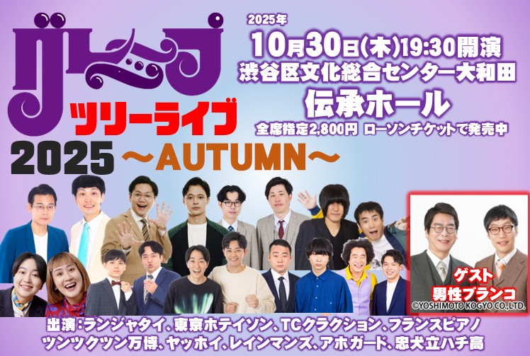 10/30(木)「グレープツリーライブ2025~AUTUMN~」ランジャタイ出演決定!ゲストは男性ブランコ!【当日券は19:00~販売】