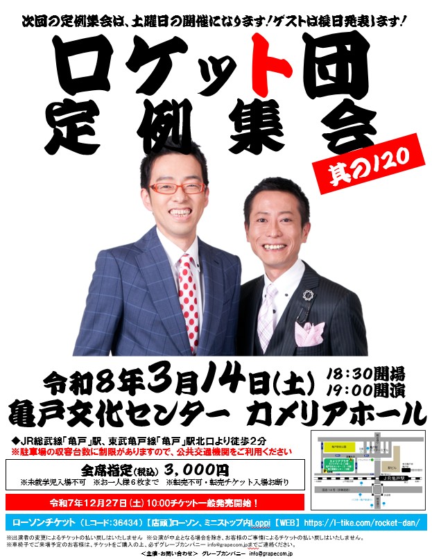 「ロケット団 定例集会 其の120」3/14(土)開催決定!