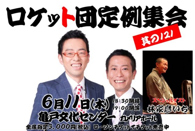 6/11(木)「ロケット団 定例集会 其の121」ゲストに林家彦いち師匠決定!チケット発売中!