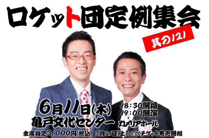 2026.03.14NEWSLIVE/EVENT6/11(木)「ロケット団 定例集会 其の121」開催決定!3/21(土)チケット発売開始!